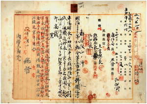 四一 台湾総督府鉄道部長長谷川謹介ノ稟申ニ依リ明治三三年八月勅令第三五二号鉄道停車場駅長・助役及車長服制ニ関シ台湾総督府文官中鉄道係員服制制定並ニ明治三三年八月勅令第三五二号改正ノ件内務大臣原敬ヘ勅令案稟申ノ件