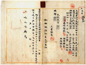 一 塩水港庁学甲堡北門嶼庄ヱ合全ト王徳性ノ願ニ依リ支那形船金源順号及ヒ金徳発号ノ船舶国籍証書送付ノ件