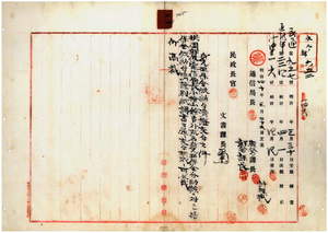 二一 桃園郵便電信局小檜山鐐吉・阿猴郵便電信局長坂田両吉・頂双渓郵便電信局長速見敬忠ヘ三等郵便電信局長身元担保金仮納付済証交付ノ件