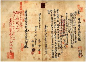 四 鉱第三九九号明治三五年一〇月二九日付許可シタル石炭鉱採掘許可(指令第二五六〇号)シタル鉱業権ニ付キ、基隆庁管内石炭鉱区共同鉱業人廖登桂・張達源ノ内廖登桂死亡ノ為メ廖火旺ニ相続シ石炭共同鉱業権相続届許可ノ件