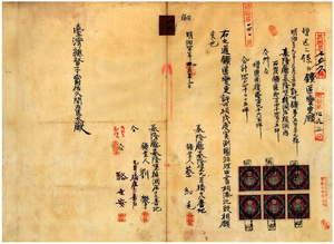 一四 基隆庁管内ノ石炭鉱区鉱業人蔡紅毛ト劉攀ヘ石炭鉱区増区ニ係ル鉱区変更願許可ノ件(指令第三二五五号)