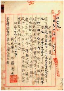 七 李清泉ト林青ヘ相思樹植林ノ為メ彰化庁線東堡蕃社口庄土名蕃社口中心崙山土地調査区域外官有原野ノ年期借地願許可ノ件(指令第一八二号)