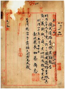 三 彰化庁長加藤尚志ヨリ提出ノ彰化・鹿港、彰化・渓湖、台北・台南、員林・鹿港、北斗・蕃荷道ノ道路図式台帳異動報告及ヒ彰化庁水道工事設計変更認可ノ件