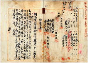 一二 明治三八年一〇月二五日民土第八四七号ノ判任官以下官舎設計標準中変更ヲ台北庁長佐藤友熊・基隆庁長横沢次郎・宜蘭庁長中田真温・深坑庁長丹野英清・桃園庁長津田毅一・新竹庁長里見義正・苗栗庁長家永泰吉郎・台中庁長佐藤謙太郎・彰化庁長加藤尚志・南投庁長小柳重道・斗六庁長荒賀直順・嘉義庁長岡田信興・塩水港庁村上光・蕃薯椙庁長石橋亨・鳳山庁横山虎次・阿猴庁長佐佐木基・恒春庁長柳本通義・台東庁長森尾茂助・澎湖庁長脇本彬・専売局長宮尾舜治・淡水税関長岩政憲三・安平税関長岩政憲三・台北監獄長小松吉久・台南監獄長志豆機源