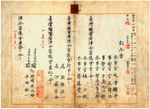 二 台湾総督府参事官ノ大津麟平・賀来佐賀太郎、事務官ノ宮尾舜治・手島兵次郎ヲ律令審議会員ニ命シ、参事官楠正秋ト斎藤愛二ヲ律令審議会幹事ニ命シ、属ノ瀬能荘一ト伊藤宗也ヲ律令審議会書記ニ命シ、台湾総督府官房文書課勤務嘱託湖幡辰之助ト台湾総督府民政部土木局勤務雇吉田欽一ニ律令審議会兼務ヲ命ス