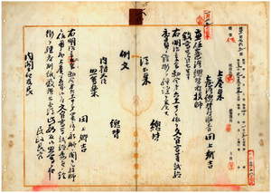 一〇 台湾総督府民政部土木局長心得長尾半平ト通信局長鹿子木小五郎ノ内申ニ依リ台湾総督府民政部通信局海事課勤務台湾総督府海事官田上郷吉ヲ船舶ニ関スル台湾総督府技師ニ兼任シ民政部土木局営繕課勤務ヲ命ス(1906-12-24~1907-01-26);台湾総督府医学校長高木友枝ト台北医院長長野純蔵ノ内申ニヨリ台湾総督府医学校助教授兼台湾総督府医学校舎監台湾総督府医院医員木下嘉七郎ヲ昇級ノ上台湾総督府医学校教授兼台湾総督府医学校舎監ニ任ス(1906-12-12~1907-01-26)