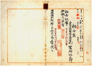 一七 台東郵便電信局勤務台湾総督府通信書記富所恒五郎ハ麻刺利亜ニ罹リ職ニ堪ヘサル旨ヲ以テ辞職願ニ依リ昇級ノ上本官ヲ免シ事務格別勉励ニ付キ一時金ヲ賞与ス