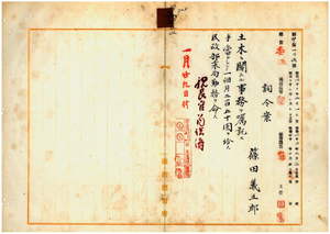 五二 台湾総督府民政部土木局長心得長尾半平ノ内申ニ依リ篠田義五郎ニ土木ニ関スル事務ヲ嘱託シ台湾総督府民政部土木局勤務ヲ命ス