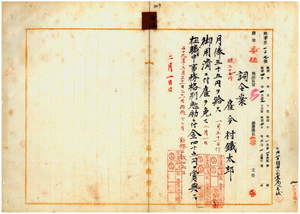七三 臨時台湾戸口調査部長祝辰巳ノ内申ニ依リ雇今村鉄太郎ヲ昇級ノ上(一月三一日付)御用済ニ付キ雇ヲ免シ(二月一日付)事務格別勉励ニ付キ一時金ヲ賞与ス(二月一日付)