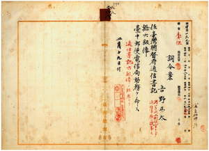 八八 台中郵便電信局長向井田善五郎ノ内申ニ依リ通信事務員吉野正太ヲ台湾総督府通信書記ニ任シ台中郵便電信局勤務ヲ命ス