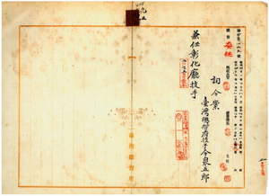 九三 彰化庁長加藤尚志ノ内申ニ依リ台湾総督府民政部土木局勤務台湾総督府技手今泉五郎ヲ彰化庁技手ニ兼任ス