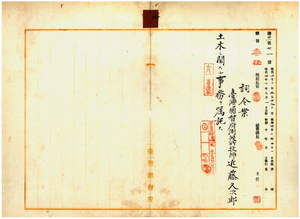 二 台湾総督府民政部土木局長心得長尾半平ノ内申ニ依リ台湾総督府民政部通信局台北測候所長台湾総督府測候所技師近藤久次郎ニ土木ニ関スル事務ヲ嘱託ス