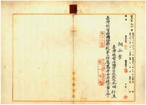 三 台湾総督府国語学校長心得持地六三郎ノ上申ニ依リ台湾総督府国語学校教授尾田信直ニ台湾総督府国語学校第三附属高等女学校主事ヲ命ス