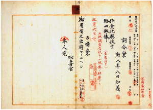 二 台北庁長佐藤友熊ノ内申ニ依リ豊国炭坑測量取締八田知義ヲ台北庁技手ニ任ス