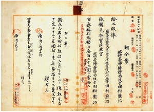 一〇 臨時台湾糖務局技手兼台湾総督府技手澎湖庁技手田村熊治ハ疾病ニ罹リ職ニ堪ヘサル旨ヲ以テ辞職願ニ依リ昇級ノ上本官並ニ兼官ヲ免シ事務格別勉励ニ付キ一時金ヲ賞与ス