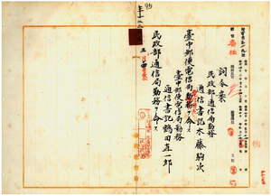 二三 台湾総督府民政部通信局長鹿子木小五郎ノ内申ニ依リ台湾総督府民政部通信局勤務台湾総督府通信書記木藤駒次ニ台中郵便電信局電信課長ヲ命シ、台中郵便電信局勤務台湾総督府通信書記鶴田直一郎ニ民政部通信局勤務ヲ命ス