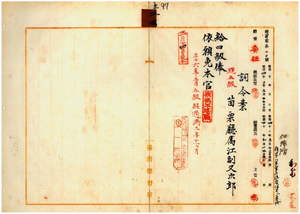 二四 苗栗庁属江副又次郎ハマラリアニ罹リ職ニ堪ヘサル旨ヲ以テ辞職願ニ依リ職務勉励成績優等ニ付キ昇級ノ上本官ヲ免ス