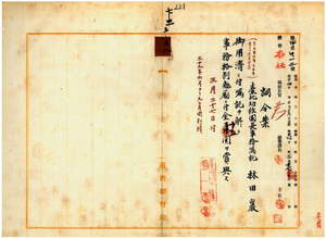 五八 台北幼稚園管理者台湾総督府国語学校長心得持地六三郎ノ内申ニ依リ台北幼稚園長事務嘱託林田巌ヲ御用済ニ付キ嘱託ヲ解キ事務格別勉励ニ付キ一時金ヲ賞与ス