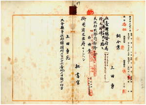 一六 台湾総督府民政部財務局長心得代理宮尾舜治ノ内申ニ依リ元煙草専売局属上田勇ヲ台湾総督府属ニ任シ民政部財務局勤務ヲ命ス