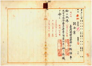 二三 台湾総督府民政部警察本署長代理大津麟平ノ内申ニ依リ民政部警察本署勤務台湾総督府警部小野維年ヲ昇級ノ上(三月三一日付)、文官分限令第一一条第一項第四号ニ依リ休職ヲ命ス(四月一日付)