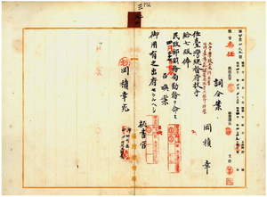 三二 台湾総督府民政部財務局長心得峡謙斉ノ内申ニ依リ元臨時台湾土地調査局技手岡積幸ヲ台湾総督府技手ニ任シ民政部財務局勤務ヲ命ス