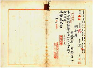 四五 南投庁属前島喜一事務格別勉励ニ付キ一時金ヲ賞与シ昇級ノ上麻剌里亜ニ罹リ職ニ堪ヘサル旨ヲ以テ辞職願ニ依リ本官ヲ免ス