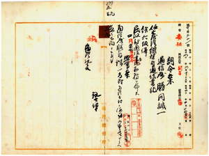 五九 台湾総督府民政部通信局長鹿子木小五郎ノ内申ニ依リ大阪郵便為替貯金管理支所勤務逓信省通信属勝間誠一ヲ台湾総督府通信書記ニ任シ民政部通信局勤務ヲ命ス