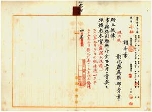 六六 彰化庁属服部秀幸ニ昇級ノ上事務格別勉励ニ付キ賞与シ疾病ニ罹リ職ニ堪ヘサル旨ヲ以テ辞職願ニ依リ本官ヲ免ス