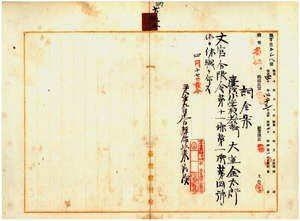 七二 台南庁長村上先ノ具申ニ依リ台湾小学校教諭大室金太郎ニ職員間折合不良ニ付キ文官分限令第一一条第一項第四号ニ依リ休職ヲ命ス