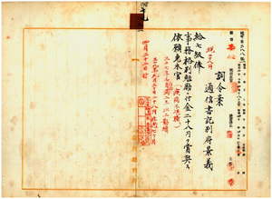 八三 彰化郵便電信局勤務台湾総督府通信書記別府景義ヲ事務格別勉励ニ付キ一時金ヲ賞与シ麻剌里亜病ニ罹リ職ニ堪ヘサル旨ヲ以テ辞職願ニ依リ本官ヲ免ス