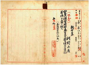 一七 警察官及司獄官練習所長大島久満次ノ内申ニ依リ警察官及司獄官練習所雇河野正道ヲ台湾総督府民政部警察官及司獄官練習所書記ニ任ス[別紙履歴書なし]