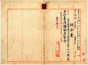 三五 台湾総督府民政部警察本署長警視総長大島久満次ノ内申ニ依リ台湾総督府民政部警察官及司獄官練習所教官山口謙二郎ヲ警部特別任用令第五条ニヨリ台湾総督府警部ノ兼任ヲ命ス