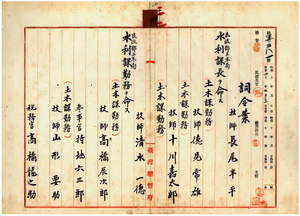 四 台湾総督府民政部土木局長心得長尾半平ノ内申ニ依リ台湾総督府民政部土木局土木課勤務技師長尾半平ニ同局水利課長ヲ命シ、同局技師土木課勤務ノ徳見常雄・十川嘉太郎・清水一徳ニ同局水利課勤務ヲ命シ、同局技師土木課勤務高橋辰次郎・参事官持地六三郎・同局土木課勤務技師山形要助・税務官高橋龍之助・技師大越大蔵ニ民政部土木局水利課兼務ヲ命ス