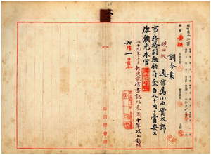 一八 台中郵便局勤務通信属小西実太郎ハ麻剌利亜ニ罹リ職ニ堪ヘサル旨ヲ以テ辞職願ニ依リ事務格別勉励ニ付キ一時金ヲ賞与シ本官ヲ免ス