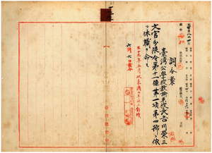 二三 苗栗庁長家永泰吉郎ノ内申ニ依リ後暇公学校勤務台湾公学校教諭兼校長吉川栄三ニ文官分限令第一一条第一項第四号ニ依リ休職ヲ命ス