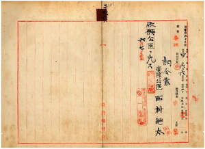 三六 南投庁埔里社街在勤台湾公医西村継太ハ麻剌利亜ニ罹リ職ニ堪ヘサル旨ヲ以テ辞職願ニ依リ公医ヲ免ス