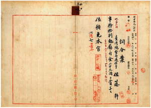 四〇 台湾総督府通信手佐藤粹ハ疾病ニ罹リ職ニ堪ヘサル旨ヲ以テ辞職願ニ依リ事務格別勉励ニ付キ一時金ヲ賞与シ本官ヲ免ス