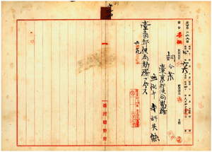 通信手寺師英熊臺南局勤務ヲ命ス