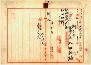 二五 塩水港庁朝倉菊三郎・嘉義庁長岡田信興ノ具申ニ依リ嘉義庁属入田親雄ニ塩水港庁属ヲ命ス