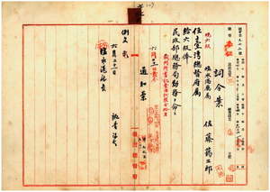 三〇 台湾総督府民政部総務局長大島久満次ノ内申ニ依リ塩水港庁属佐藤藹三郎ヲ台湾総督府属ニ任シ民政部総務局勤務ヲ命ス
