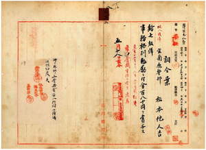 三三 宜蘭庁長中田直温ノ内申ニ依リ宜蘭庁警部松本他人吉ヲ蕃人ト衝突シ奮闘重傷ヲ受ケ危篤ニ付キ昇級ノ上事務格別勉励ニ付キ昇級ノ上一時金ヲ賞与ス(1907四三 岩手県知事笠井信一ノ照会ニ依リ基隆庁技手門野良顕ニ岩手県ヘ出向ヲ命ス-06-18~1907-06-20);三三ノ一 桃園庁長津田毅一ノ具申ニ依リ桃園庁警部本田正己ニ前課長警部早川源五郎死亡ニ付キ桃園庁警務課長ヲ命シ(五月一九日付)課長勤務中加俸月俸十分ノ六ヲ給ス(1907-06-19~1907-06-22