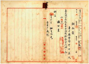 四五 台中庁長佐藤謙太郎ト台北地方法院検察官長松井四郎ノ上申ニ依リ台中庁警部中田直久ニ台北地方法院台中出張所検察官代理ヲ命ス