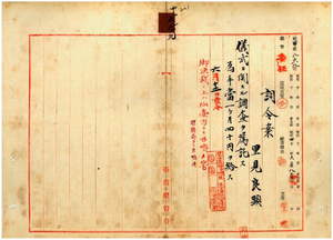 五九 台湾総督府民政部財務局長代理峡謙斉ノ内申ニ依リ里見良顕ニ儀式ニ関スル調査ヲ嘱託ス