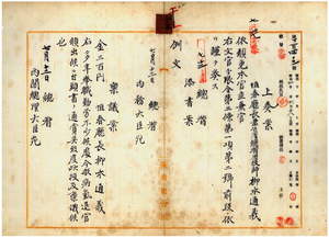 一三 恒春庁長兼台湾総督府技師柳本通義ニ病気療養中快復ノ見込ナク職ニ堪ヘサル旨ヲ以テ退官願ニ依リ本官並ニ兼官ヲ免シ昇級ノ上事務格別勉励ニ付キ一時金ヲ賞与ス[「進退八」の案件一に秘書官より恒春庁長柳本通義の辞表及び医師診断書差出願あり]