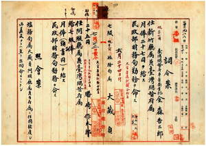 二四 台湾総督府民政部財務局長小林丑三郎ノ内申ニ依リ台湾総督府専売局書記金森告三郎ヲ新竹庁属兼台湾総督府属ニ任シ民政部財務局勤務ヲ命シ(六月二四日付)、赤穂塩務局勤務大蔵省塩務局属大蔵貞ト元大蔵省税務属勝崎作太郎ヲ阿緱庁属兼台湾総督府属ニ任シ民政部財務局勤務ヲ命ス(七月二二日付)