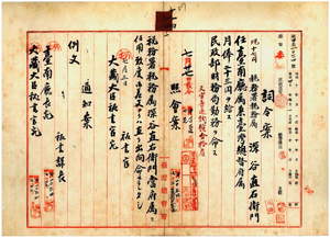 一四 台湾総督府民政部財務局長小林丑三郎ノ内申ニ依リ佐原税務署勤務税務署税務属深谷直右衛門ヲ台南庁属兼台湾総督府属ニ任シ民政部財務局勤務ヲ命ス