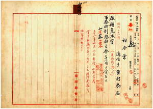 二六 台中郵便局勤務台湾総督府通信手重村泰右ハ麻剌利亜ニ罹リ職ニ堪ヘサル旨ヲ以テ辞職願ニ依リ本官ヲ免シ事務格別勉励ニ付キ一時金ヲ賞与ス
