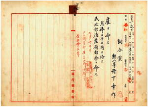 三〇 台湾総督府民政部殖産局長宮尾舜治ノ具申ニ依リ元臨時台湾戸口調査部雇丹下幸作ニ台湾総督府雇ヲ命シ民政部殖産局勤務ヲ命ス
