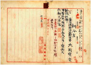 三二 台南監獄嘉義支監勤務台湾総督府監獄医員大図寅吉ハ麻剌里亜ニ罹リ職ニ堪ヘサル旨ヲ以テ辞職願ニ依リ昇級ノ上事務格別勉励ニ付キ一時金賞与シ本官ヲ免ス