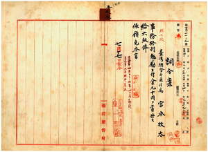 三三 台湾総督府通信属宮本牧太ハ疾病ニ罹リ職ニ堪ヘサル旨ヲ以テ辞職願ニ依リ事務格別勉励ニ付キ一時金ヲ賞与シ昇級ノ上本官ヲ免ス